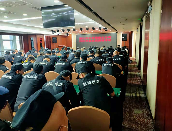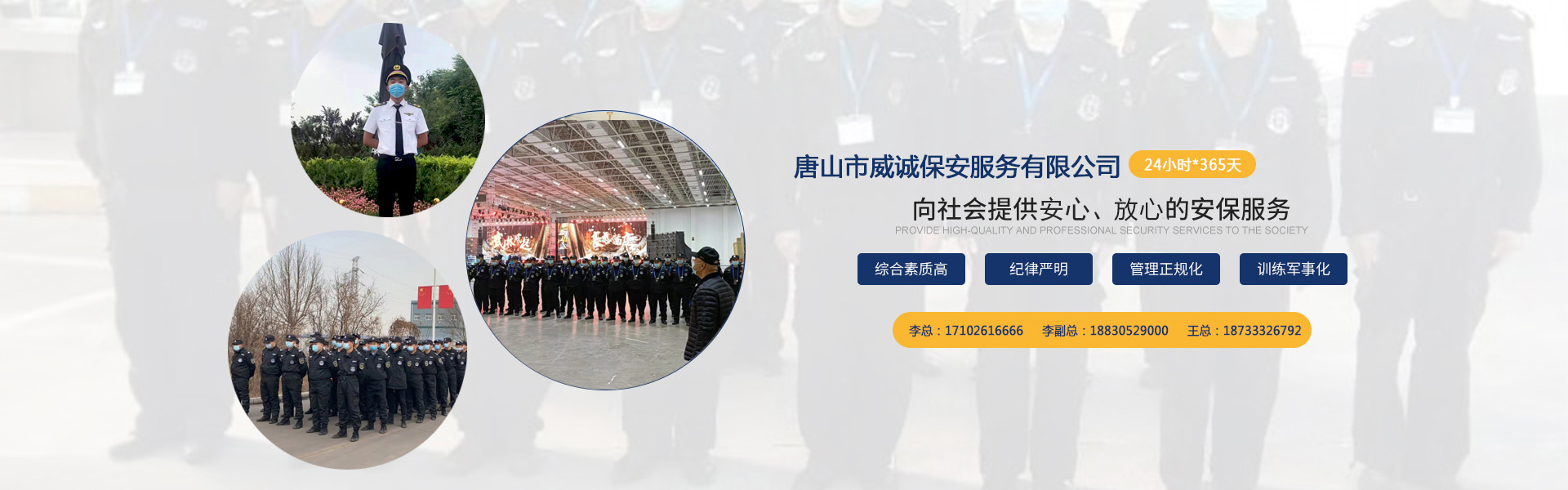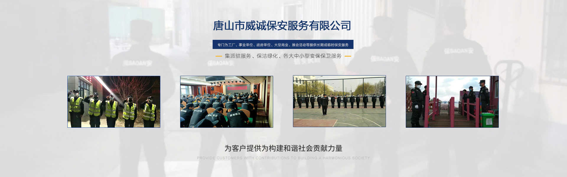 唐山市威誠保安服務有限公司自成立以來以“嚴防死守、忠于業(yè)主”為服務原則,以“客戶滿意、 合作共贏”為根本目標。以科學的管理、多方位多層次的服務,建立了首問責任制,完善了走訪、回訪 、滿意度調查、末位淘汰的預警管理,不斷提高服務質量,提高業(yè)主滿意度,提高企業(yè)形象。秉承“誠 實守信,紀律嚴明,團結協(xié)作,致精致誠”的服務理念,為客戶提供高品質、多方位、專業(yè)化的保安服務。 本公司制定了嚴謹?shù)亩ㄏ蛘猩徢芭嘤枴⒖己虽浻谩徶信嘤枴⒊掷m(xù)培訓、末位淘汰制等一整套完善的管理體系。可以根據(jù)客戶的要求實地勘察評估,以量身定做的方式提供安保防范服務。